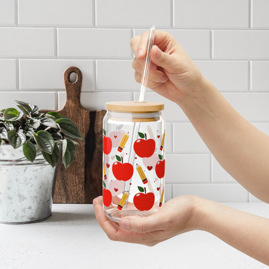Apples and Pencils Glass Cup