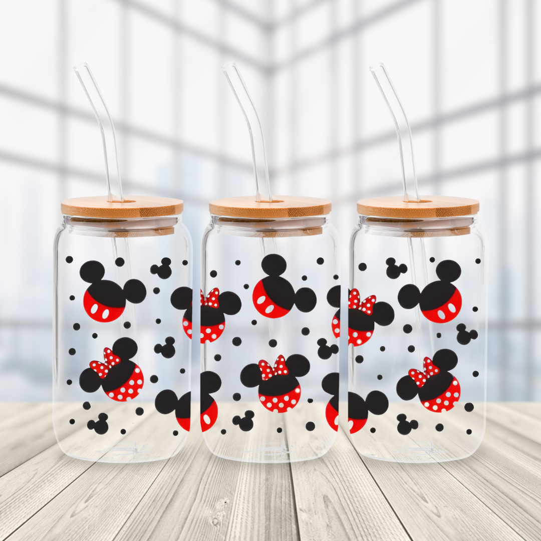 Mickey & Minnie Heads Glass Cup